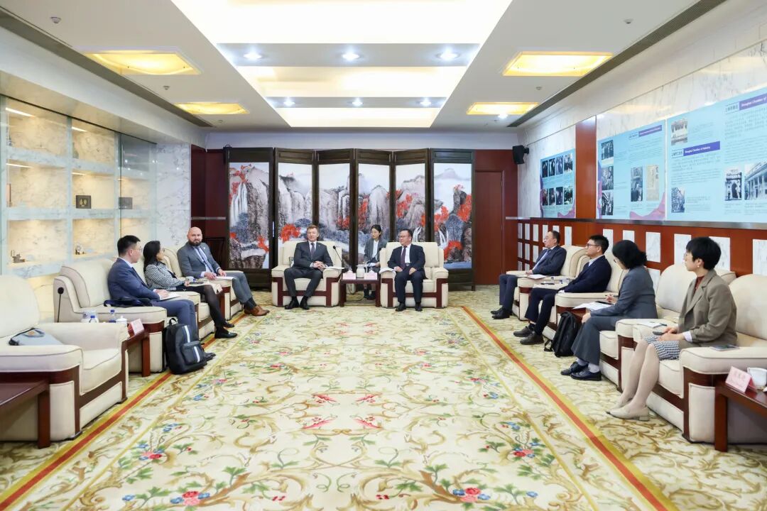 汪剑明对列别江采夫一行的来访表示欢迎,介绍了上海市工商联(总商会)国际合作相关工作。